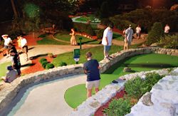 McGolf Christie Aucoin, 18, of Waltham lines up her shot on this Dedham course that is known for its landscaping. (Globe Staff Photo/John Bohn)