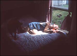 In her trailer park home, Alice Upperman, who requires kidney dialysis, naps with a doll she saved from childhood and her dog.