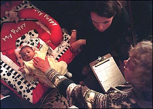 Occupational therapist Wilma Ferkol works with Naia and Tierney .