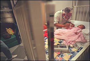 Naia's Grandfather Bob Fairchild visits with Naia five days after her surgery.