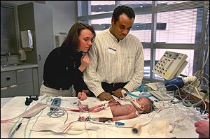 Tierney and Greg tentatively watch over Naia in the ICU after her heart surgery.
