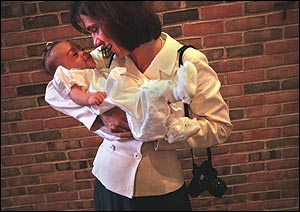 Tierney and Naia play together in St. Timothy's church for Naia's Christening.