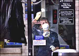 Sutton: 06/29/99 State Police Trooper Susan Howe of the Crime Scene Services unit dusts for fingerprints at a convenience store and gas station where a night clerk was shot and killed.