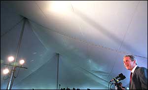 New Castle, N.H.: 06/14/99 Republican presidential candidate George W. Bush speaks to supporters at the New Castle Recreation Center. It was Bush's first visit to New Hampshire as a presidential candidate.