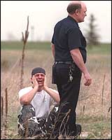 Three youths wearing black - but not trench coats - were stopped by police in a field near the school. State law officers said the three were friends of the gunmen and were being taken in for questioning.