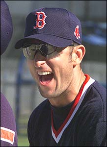 Red Sox shortstop Nomar Garciaparra looks like he's enjoying practice. (Globe Photo / Frank O'Brien)