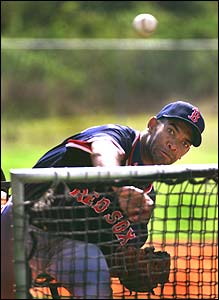 Red Sox pitcher Ramon Martinez throws live batting practice today. (Globe Photo / Barry Chin)