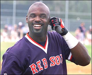 Red Sox outfielder Carl Everett gives his ear a tug.
