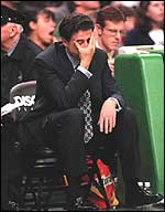 That didn't sit well with anyone. For the first time, Pitino and his team heard boos in the FleetCenter. Fans derisively called for M.L. Carr to come back. Antoine Walker was regularly jeered for missing shots, even if they were good shots. The team would win only 10 of 25 games at home and finish the season 19-31, well out of the playoffs for the fourth straight year.